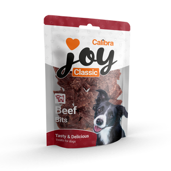 Complementary food for dogs. Calibra Joy Beef Bits are tasty semi-moist beef treats, crafted in small bite-sized pieces for rewarding good behaviour.